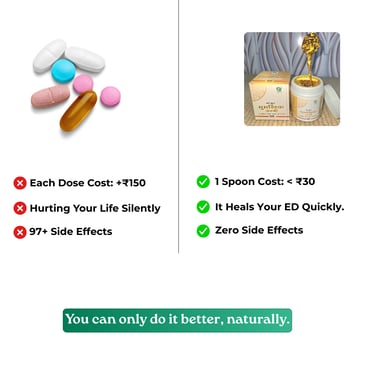 Side effects from synthetic pills: heart problems, liver damage, depression, memory loss. Treatment costs: ₹2,00,000-5,00,000+. Many men develop serious health complications that destroy their families financially.