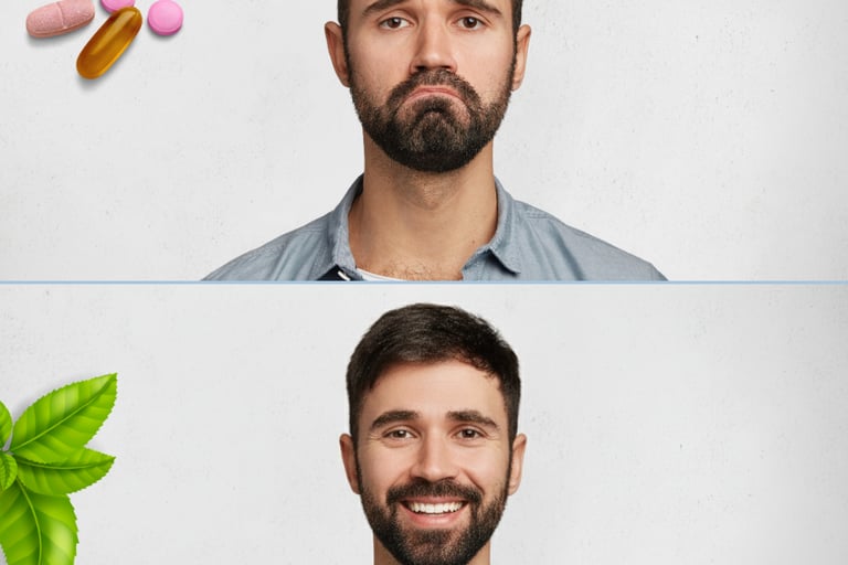 Chemical Path: Synthetic pills, side effects, dependency, shame, expensive treatments, artificial results.